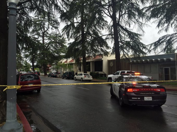 Según el jefe de la Policía Jerry Dyer, primero el individuo abrió fuego contra una camioneta en la que había una persona, la cual ha fallecido como consecuencia de las heridas. Segundos después el sospechoso abrió fuego también contra un transeúnte en la misma zona aunque erró en su disparo. Posteriormente, el mismo hombre mató a tiros a dos personasque se encontraban cerca de una parada de autobuses.